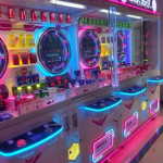 - Immersive Cyber Neon Lighting: The machine is equipped with full-color RGB neon light strips, with a cyber-style pink-blue color scheme, paired with a “Coke Party” themed light box. When powered on, the lights sync to the rhythm, delivering a strong visual impact, suitable for all trendy amusement scenarios.