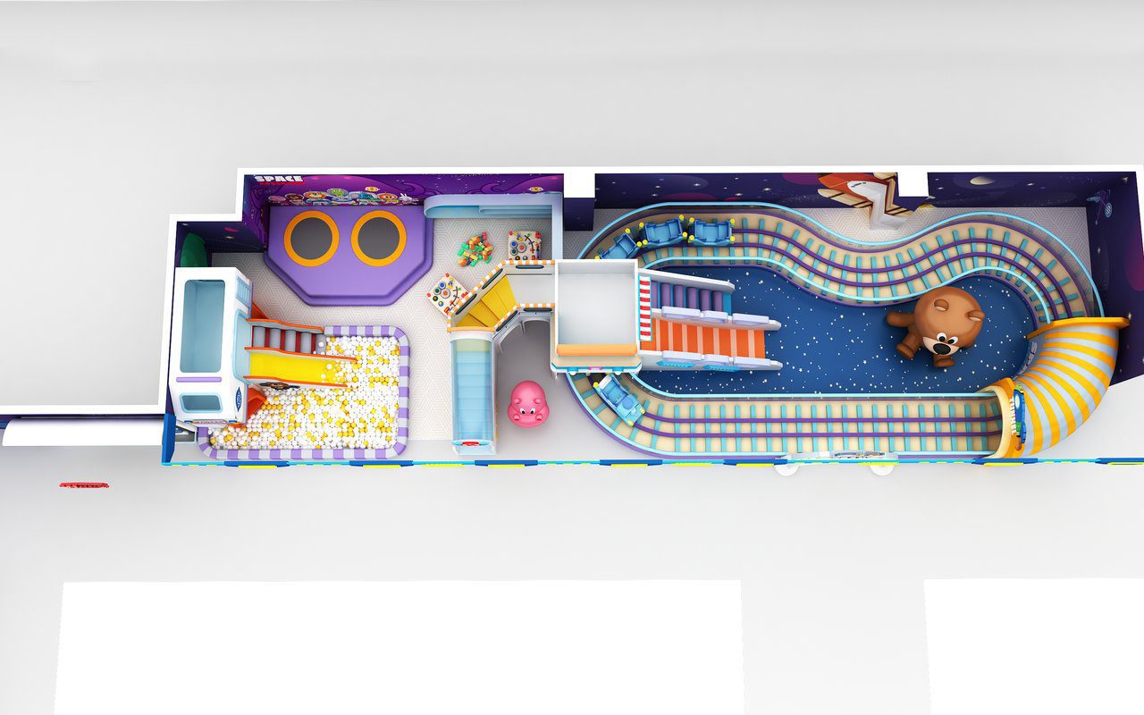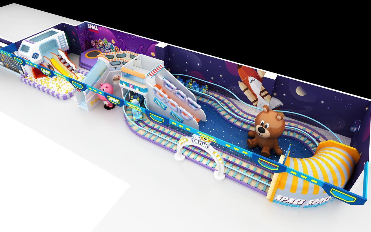 Despite its compact 150m² size, this space adventure playground packs in an impressive array of features. The multi-level design maximizes vertical space with climbing nets, tube slides, and observation decks. Space capsule ball pits, meteor climbing walls, and alien encounter zones provide diverse play experiences that keep children engaged for hours.